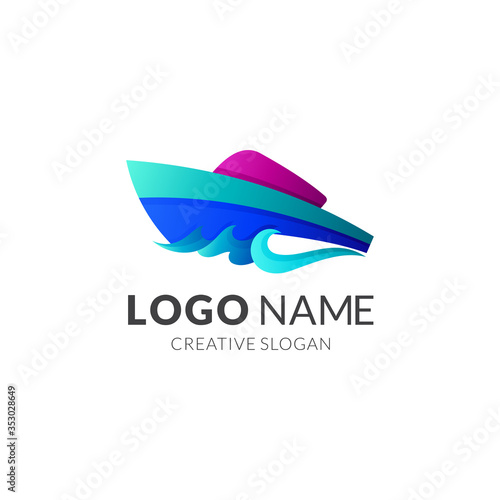 © Amelia, Fototapeta premium Boat Wave Logo Design, Water Transportation Vector Icon
