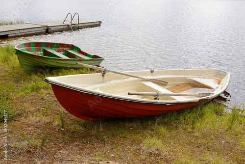 Naklejka premium Boats after rain. Northern Finland