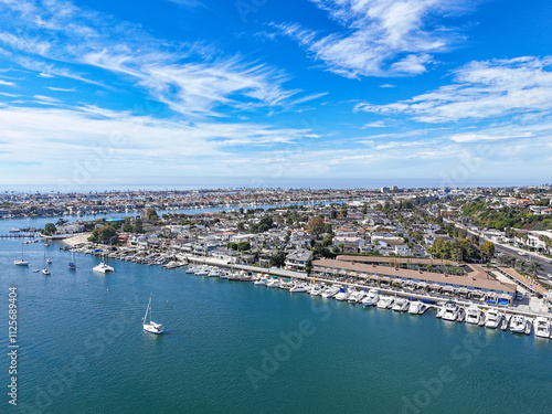 Fototapeta premium Boats docked at waterfront homes in Newport Beach, Orange County, Southern...