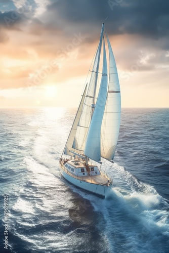 Naklejka premium boats_docked_on_a_beach_near_the_mountains