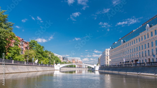 © HyperlapsePro, Obraz premium Boats floats on the Moskva River past the Moscow Kremlin and other famous places timelapse hyperlapse, Russia