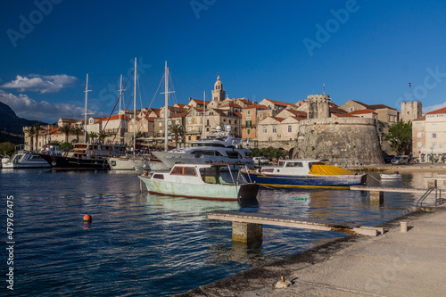 © Matyas Rehak, Obraz premium Boats in marina of Korcula town, Croatia