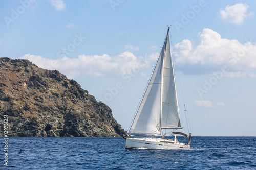 Obraz premium Boats in sailing regatta at Aegean Sea. Luxury yachts.