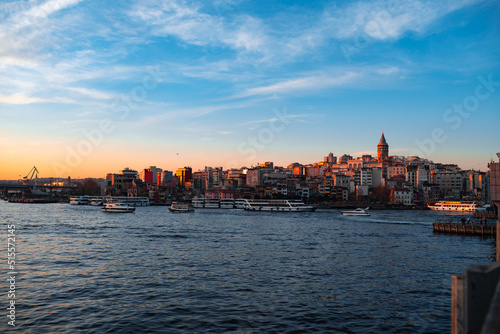 Fototapeta premium Boats in sea and scenic sunset in Istanbul