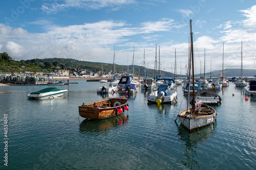 Fototapeta premium Boats in the harbour at Lyme Regis in Dorset, UK.