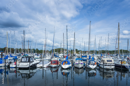 Fototapeta premium Boats in the marina, Eckernfoerde, Baltic Sea, Schleswig-Holstein, Germany