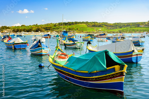 Fototapeta premium Boats Luzzu at Marsaxlokk harbor