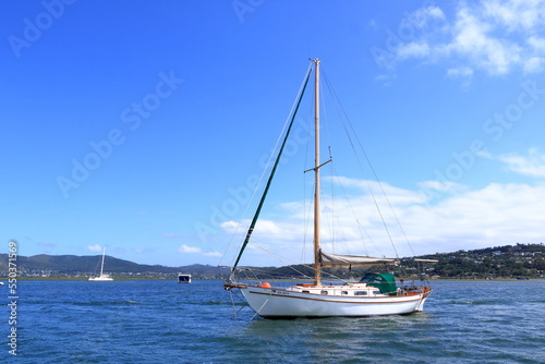 Obraz premium Boats on Knysna Lagoon looking towards Knysna Heads, Garden Route, South Africa