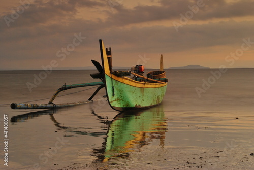 © IKadek, Fototapeta premium boats on the beach at sunset