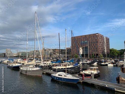 © Alexander, Fototapeta premium Boats parking in port of Amsterdam, NL