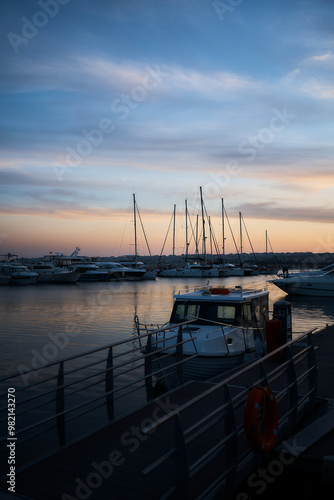© Victoria Antre, Fototapeta premium boats, sailboats in the harbor at sunset