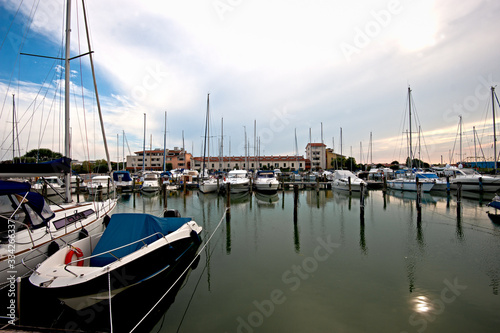 Naklejka premium Boats waiting in the port of Caorle, a charming holiday resort and fishing village.Italy.