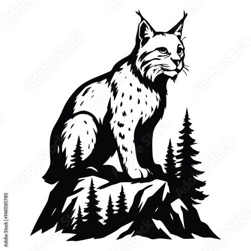 © Shineoxstock, Obraz premium Bobcat Forest Nature vector, Animal forest scene illustration, Jungle Animals silhouette design