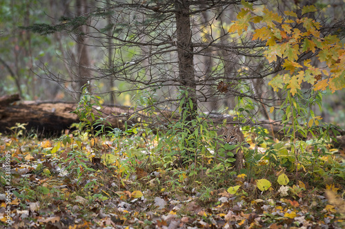 Fototapeta premium Bobcat (Lynx rufus) Camoflauged w jesiennym środowisku