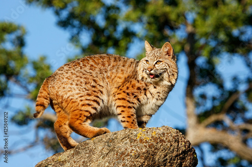 Fototapeta premium Bobcat standing on a rock