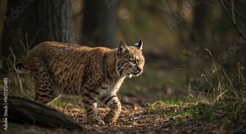 © widiati, Fototapeta premium Bobcat walking in forest