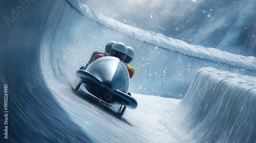 © Zaiteva Irina, Obraz premium Bobsleigh Team Racing Through Icy Curve on Winter Track
