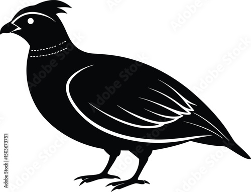 © Jabed, Obraz premium Bobwhite Quail vector Silhouette, Quail silhouette Vector illustration design.