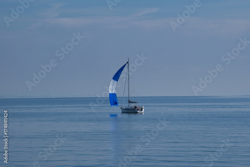 Fototapeta premium Bodensee, einzelnes Segelboot auf dem herbstlichen See