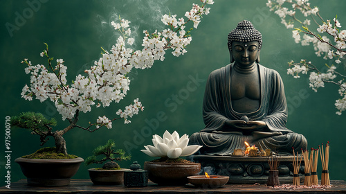 © rafliand, Fototapeta premium bodhisattva lord buddha statue monk meditating buddhism culture religion