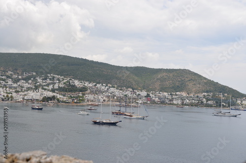 Fototapeta premium bodrum city panorama landscape boat