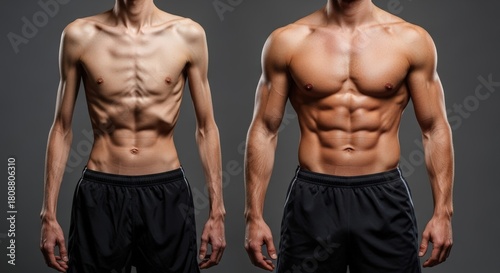 Fototapeta premium Body Transformation - From Skinny to Muscular Physique.