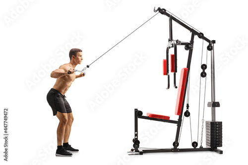 © Ljupco Smokovski, Naklejka premium Bodybuilder exercising chests on a fitness machine