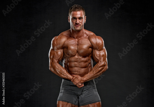 Fototapeta premium Bodybuilder Flexing Muscles, Studio Shots