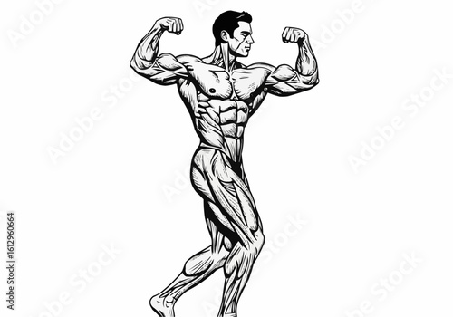 © Maik, Fototapeta premium Bodybuilder Posing Flexing Muscles Intense Workout