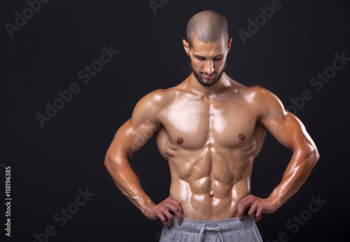 Fototapeta premium Bodybuilder posing on black background