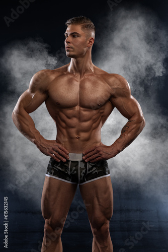 © Vitalii But, Fototapeta premium Bodybuilder showing off his perfect low fat body without clothes in studio