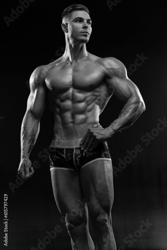 © Vitalii But, Fototapeta premium Bodybuilder showing off his perfect low fat body without clothes in studio