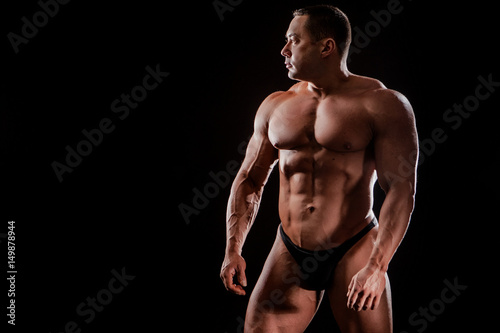 © Grispb, Fototapeta premium bodybuilding. Bodybuilder posing on a dark background