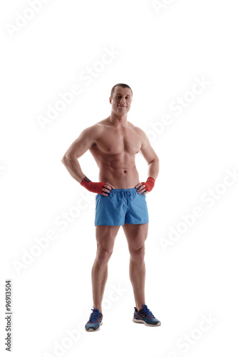 Fototapeta premium Bodybuilding. Male athlete, isolated on white