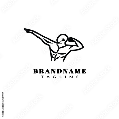 Naklejka premium bodybuilding pose logo cartoon icon cute template black isolated vector...