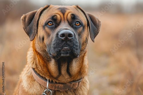 © Michael, Fototapeta premium Boerboel dog wearing collar posing outdoors in nature reserve