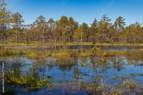 © Mykola Iegorov, Fototapeta premium Bog forest park at swampland. Northern Europe, Estonia, Viru. Fall season.