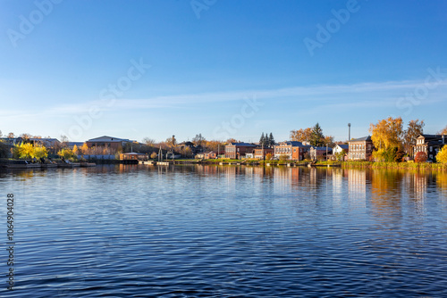 © Алексей Ромадов, Fototapeta premium Bogorodsk, Nizhny Novgorod region, Russia, Street view of an ancient provincial Russian city on the shore of a lake on a summer evening. An ancient building of artisans, an architectural monument.
