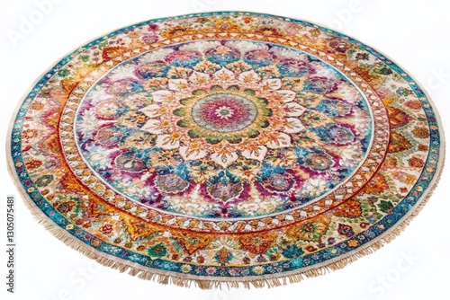 © Arnada, Naklejka premium Bohemian Watercolor Circle Rug Texture Design Illustration - Right-Positioned Copy Space