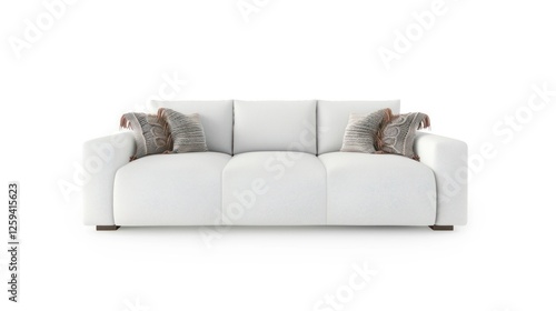 © Modern Angles, Obraz premium Boho Chic Living Room with White Sofa, Fringed Pillows, and Knitted Blanket