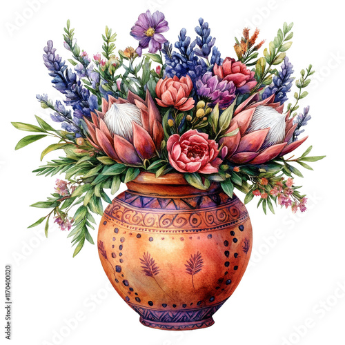 © C-Kav, Obraz premium Boho style creative flower vase watercolor clipart
