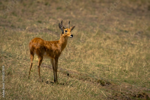 © Nick Dale, Obraz premium Bohor reedbuck stands on slope in sunshine
