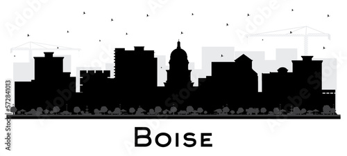 Obraz premium Boise Idaho City Skyline Silhouette with Black Buildings Isolated on White....