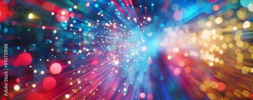 Fototapeta premium Bokeh and light trails in vibrant colors top view communication and data...