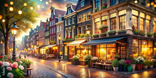 Obraz premium Bokeh Cityscape: Diverse Shops & Stores 3D Illustration