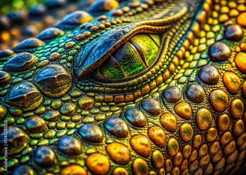 Fototapeta premium Bokeh Crocodile Texture Photography: Stunning Reptile Skin Close-Up with...