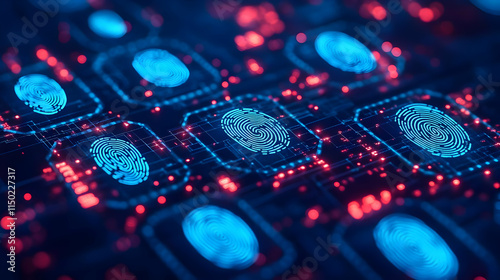 Fototapeta premium Bokeh Digital Art of Secure Biometric Systems with Copy Space for Advanced...