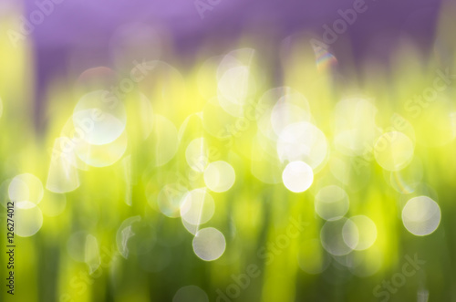 Fototapeta premium bokeh drops of dew on a green grass background