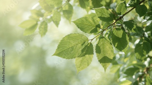 © GenZGraphics, Obraz premium Bokeh-enhanced abstract scene featuring out-of-focus green leaves