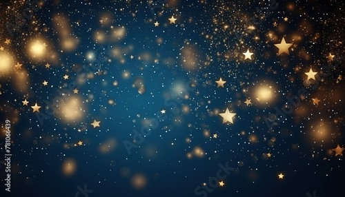 Fototapeta premium Bokeh light effect with jewelry gold chains background, gold stars with sparkling the blue background
